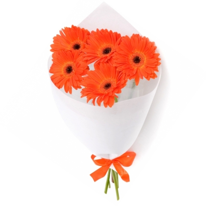Букет состоит из 9 оранжевых гербер, красивая упаковка, атласная лента.