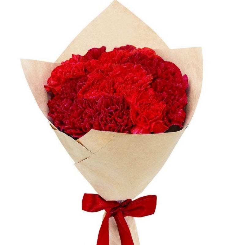 Букет из 15 красных гвоздик в крафте